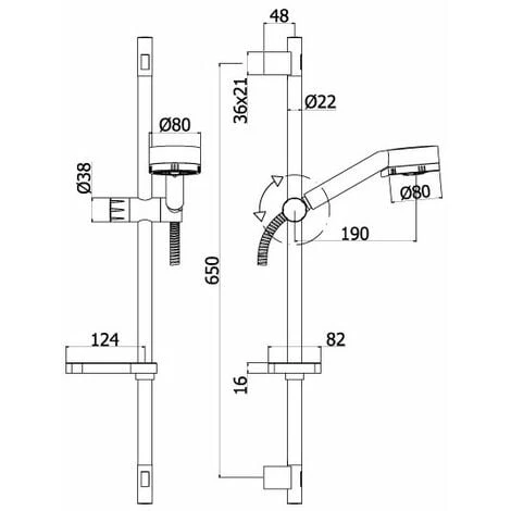 Barre coulissante pratique pour douche Paffoni modèle ZSAL110CR équipée d’une tige métallique ronde d’un diamètre de 22 mm et d’une longueur totale de 730 mm. Le rail coulissant est fourni complet avec des supports fixes en ABS, support de douche coulissant en ABS flexible en métal à double emboîtement longueur 1500 mm avec capuchon pivotant conique. Enfin, l’équipement est complété par une douche ronde de 80 mm de diamètre avec régulateur 3 fonctions et un porte-savon pratique. Le produit est en chrome poli et est couvert par une garantie de 5 ans.