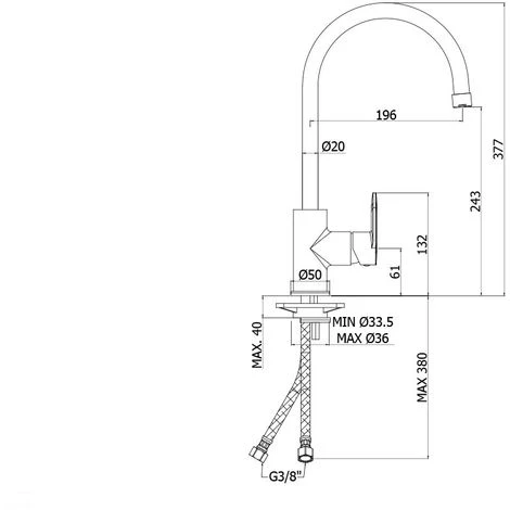 Le robinet de cuisine proposé se caractérise par un bec réglable d’un diamètre de 22 mm et un aérateur remplaçable.