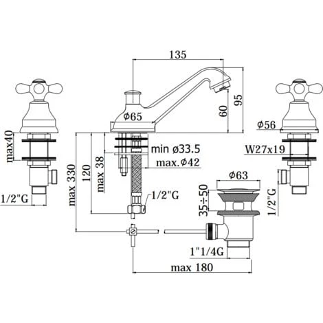 Produit dans un style rétro, il peut être installé sur des éviers 3 trous. Les finitions raffinées rendent la salle de bain luxueuse, vous pouvez décider de personnaliser ce mélangeur en choisissant entre la forme des poignées et le fini des surfaces.