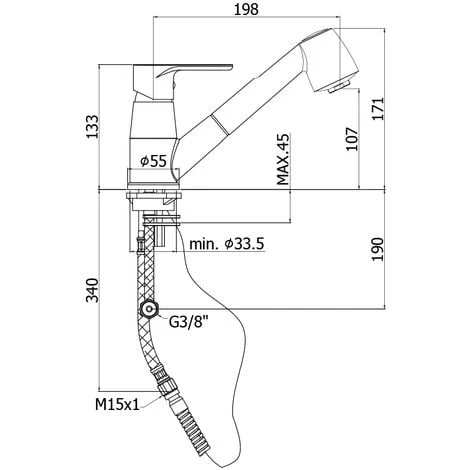 Mitigeur d’évier monotrou avec douchette extractible pratique en ABS et flexible de 1,5 m.