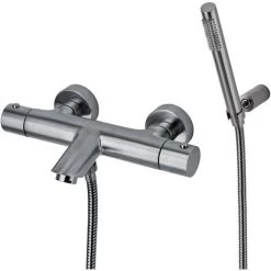 Le mitigeur de bain en question, avec inverseur complet avec aérateur M28x1 et jeu de 2 excentriques 1/2 »x3/4 »G et rosaces, est également équipé d’une douchette Master en laiton et d’un support mural articulé en métal. Flexible de douche inclus.