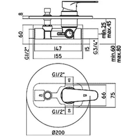 Type : mitigeur de douche à encastrer avec inverseur ;