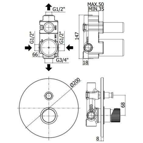 Le mitigeur de douche en laiton que nous vous proposons est complet avec corps encastrable, raccordements eau chaude/froide, raccordement 1/2″ G supérieur et 3/4″ G inférieur. De plus, ce mélangeur à deux voies est équipé d’une plaque métallique de 20 cm de diamètre et d’un inverseur à bouton-poussoir.
