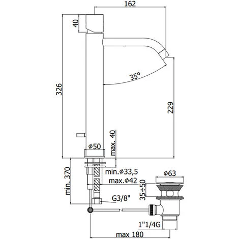 Type : mitigeur lavabo haut avec vidange automatique 1 »1/4G ;