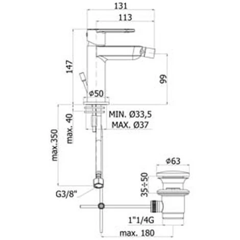 - Bidet à levier unique N ° 1 Paffoni Candy art. CA135CR;