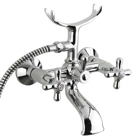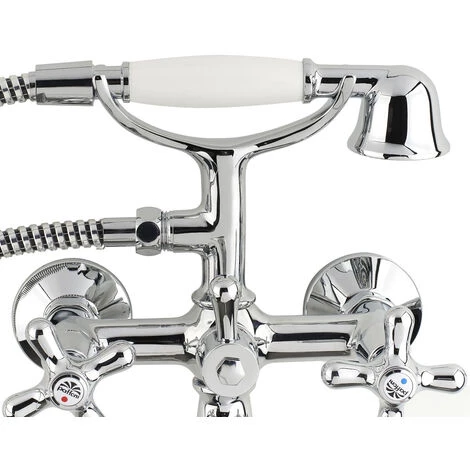 Laissez-vous séduire par le mélangeur pour baignoire avec douchette 150mm et support, Chrome et Blanc (IR023).