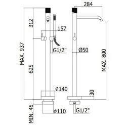 Mitigeur Bain 5 Trous Sur Gorge Avec Bec à Levier Plat Paffoni Level