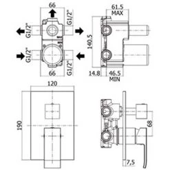 Mitigeur De Douche à Encastrer 2 Sorties Paffoni Tango Avec Inverseur Cartouche Et Plaque 120×190 Mm