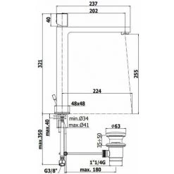 Mitigeur De Lavabo à Encastrer Paffoni Effe Avec Bec, Aérateur M24x1 – L.200 Mm Et Plaques En Acier